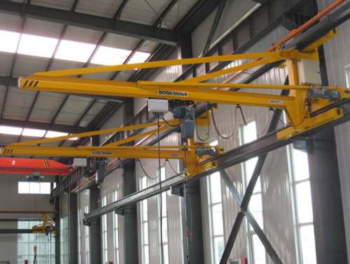 這種懸臂吊適用于多工位流水作業(yè),不需要地面空間,利用安裝在墻壁上的軌道,沿軌道運(yùn)行以實(shí)現(xiàn)多個(gè)工位的工件吊卸。減少工位對(duì)車(chē)間大型橋式起重機(jī)的依賴(lài),減少等待時(shí)間提高工作效率。